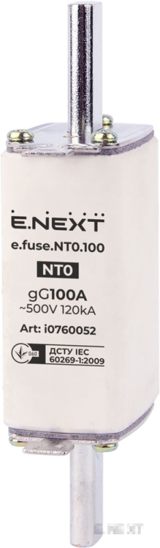 Siguranța e.fuse.NT0.100 (dimensiunea 0, 100 A) este concepută pentru a proteja rețelele electrice de joasă tensiune și echipamentele electrice de suprasarcină și curenți de scurtcircuit. Siguranța are grupa de clasificare gG și este potrivită pentru utilizarea în tablouri de distribuție și circuite de alimentare. Este echipată cu un indicator de declanșare (știft retractabil), care facilitează diagnosticarea unei siguranțe arse. Este montată într-un suport compatibil e.fuse.NT0.h și poate funcționa în poziție verticală sau orizontală.